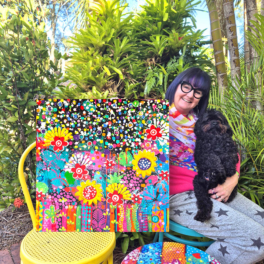 This joyful explosion of colour and imagination was inspired by the spirit of Dot Day — a celebration of starting with just one dot and seeing where it takes you. Every bold bloom, playful swirl, and dazzling dot in this painting reminds us that creativity starts with a single idea, a small mark… and then grows into something extraordinary.